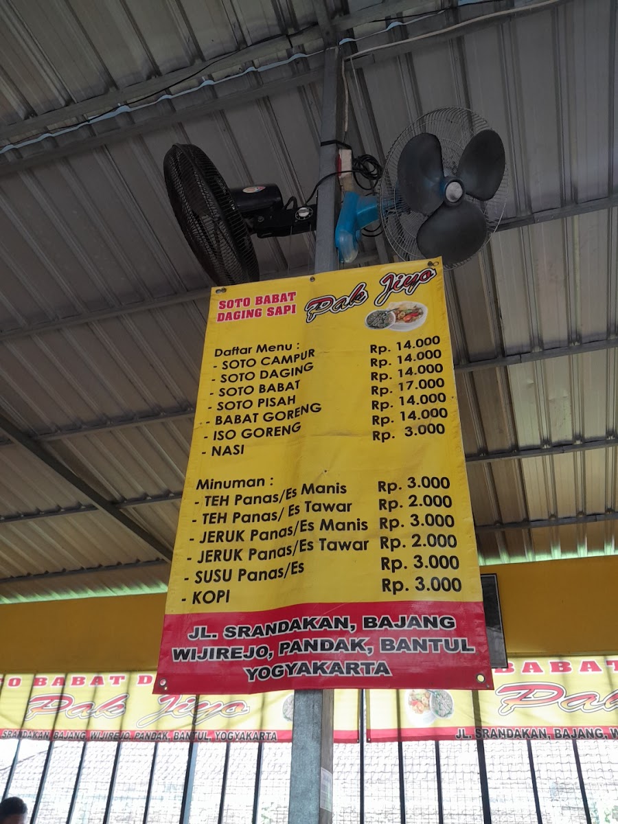 Welcome to Pak Jiyo Soto Restaurant, a culinary gem nestled in the heart of Bantul, Yogyakarta. This vibrant eatery specializes in traditional Soto dishes, offering a delightful array that highlights the region's rich culinary heritage. Take it from the locals—those who have indulged in their famous soto babat and babat & iso bacem goreng can attest to their exceptional flavors and tender textures.